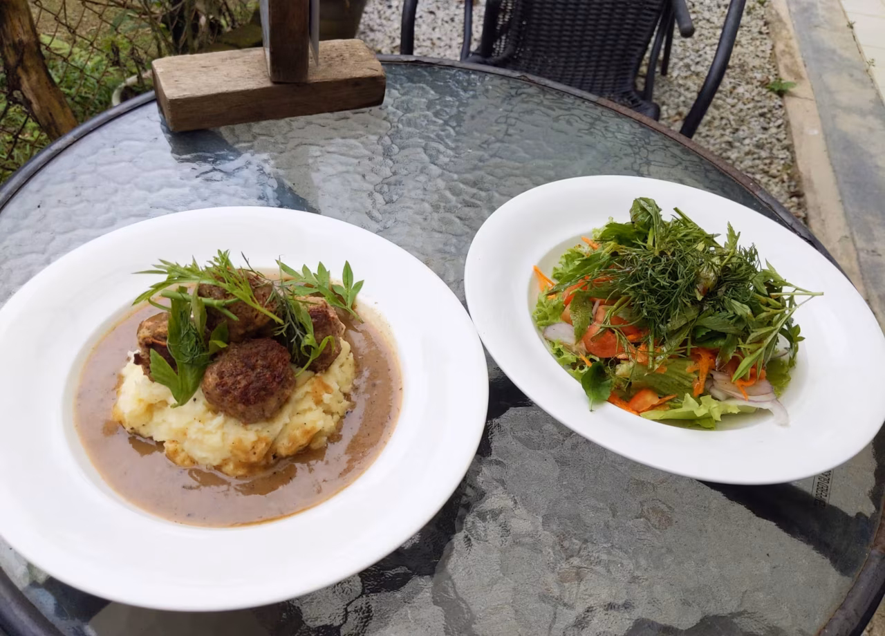 Meatballs and mash potatoes @ akar lima