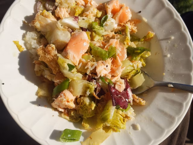 Grilled salmon rice salad