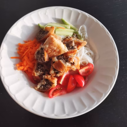 I made a bun thit nung version by adding the cold noodles and vegetables.