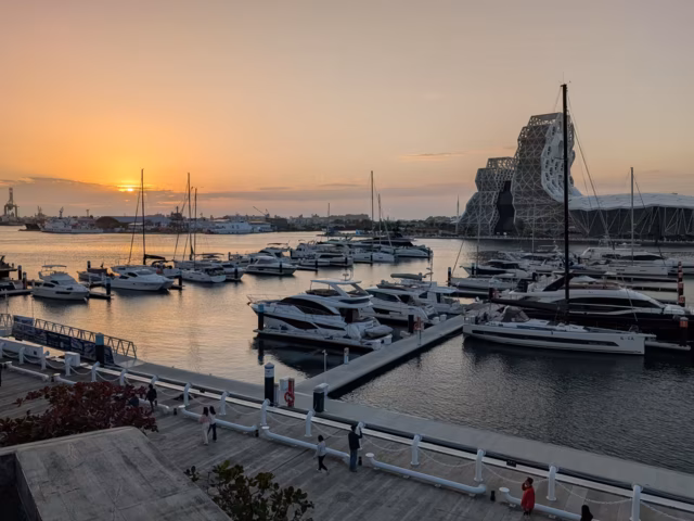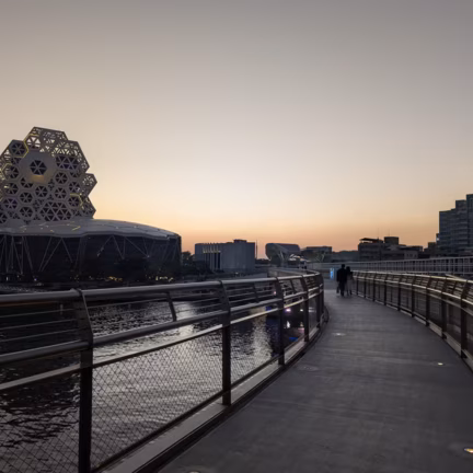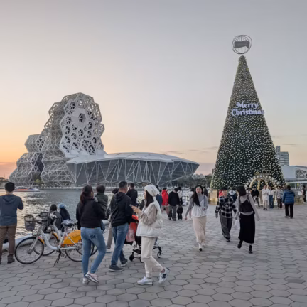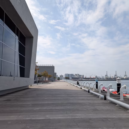 Adjacent to the waterfront, parts of an industrial pier converted to an art district.