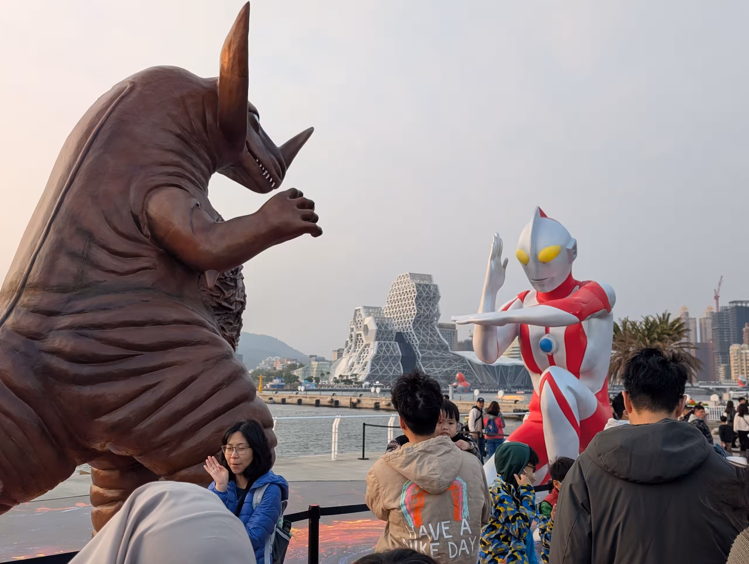 The 15-meter tall statues are meant to look like they are guarding the harbor, sending a message that the city is safe and protected.