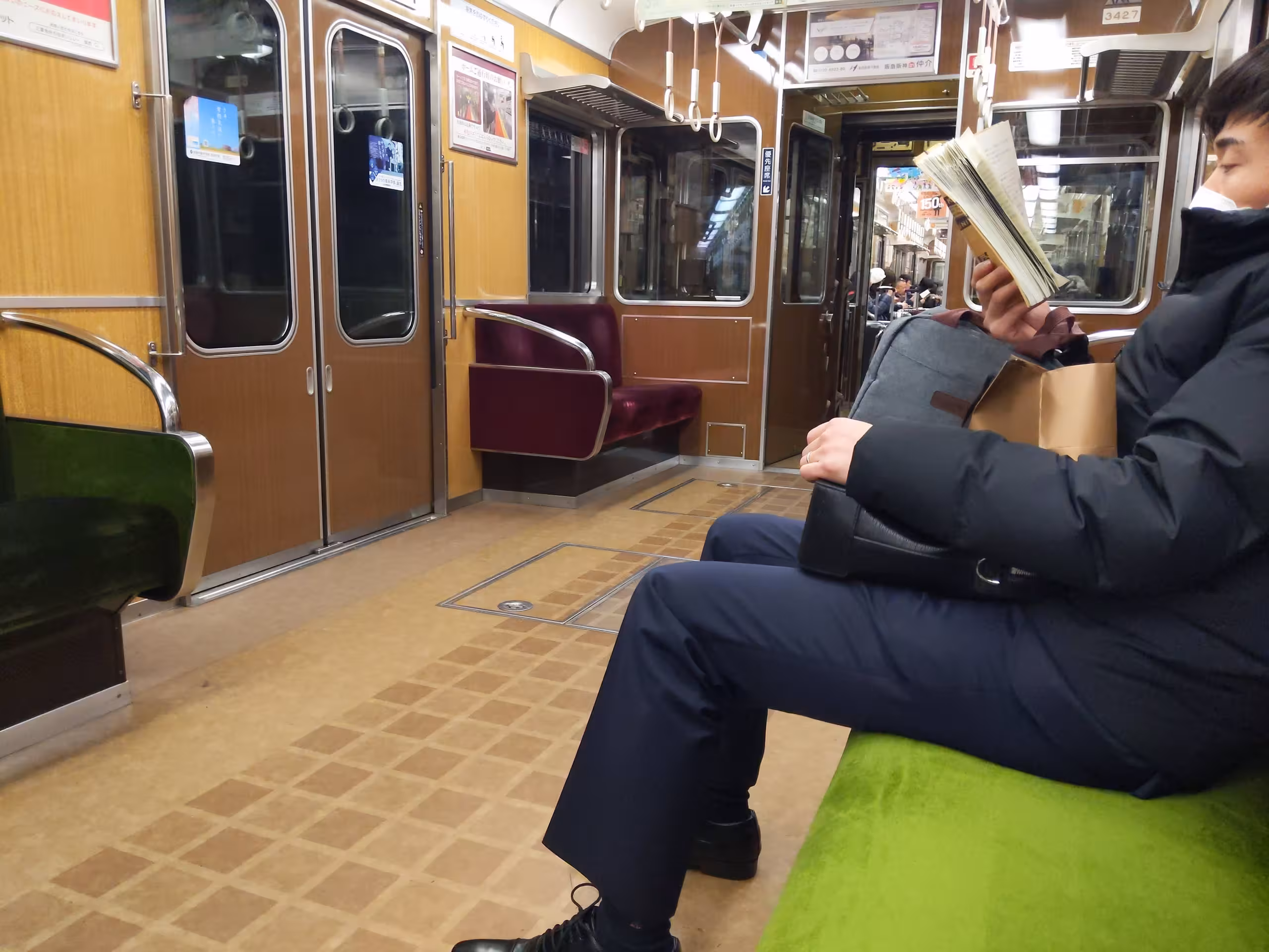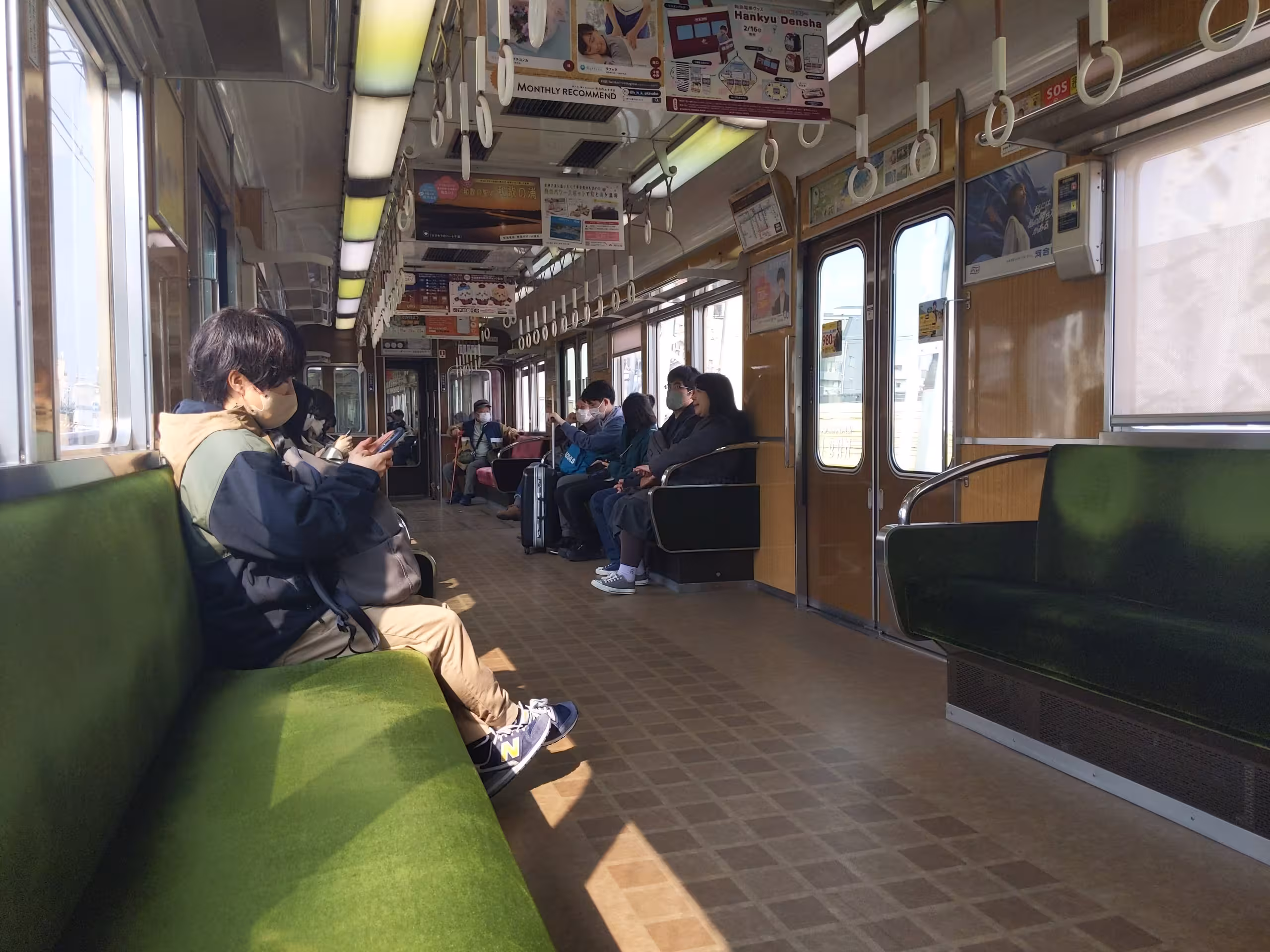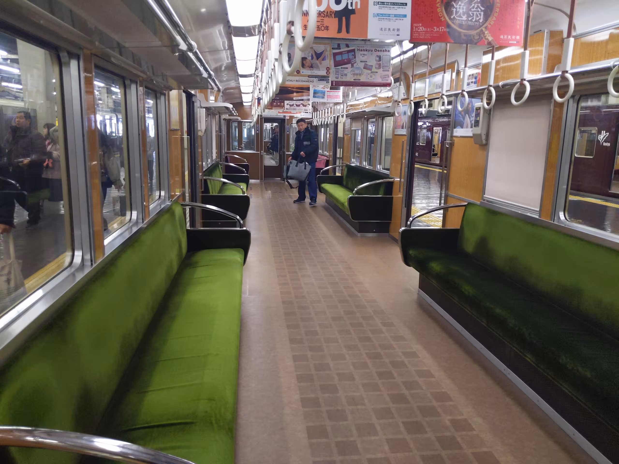 My airbnb was on the Hankyu line. Wood-tone interior and velvety texture seats. Very classy in a nostalgic way. Very comfortable.
